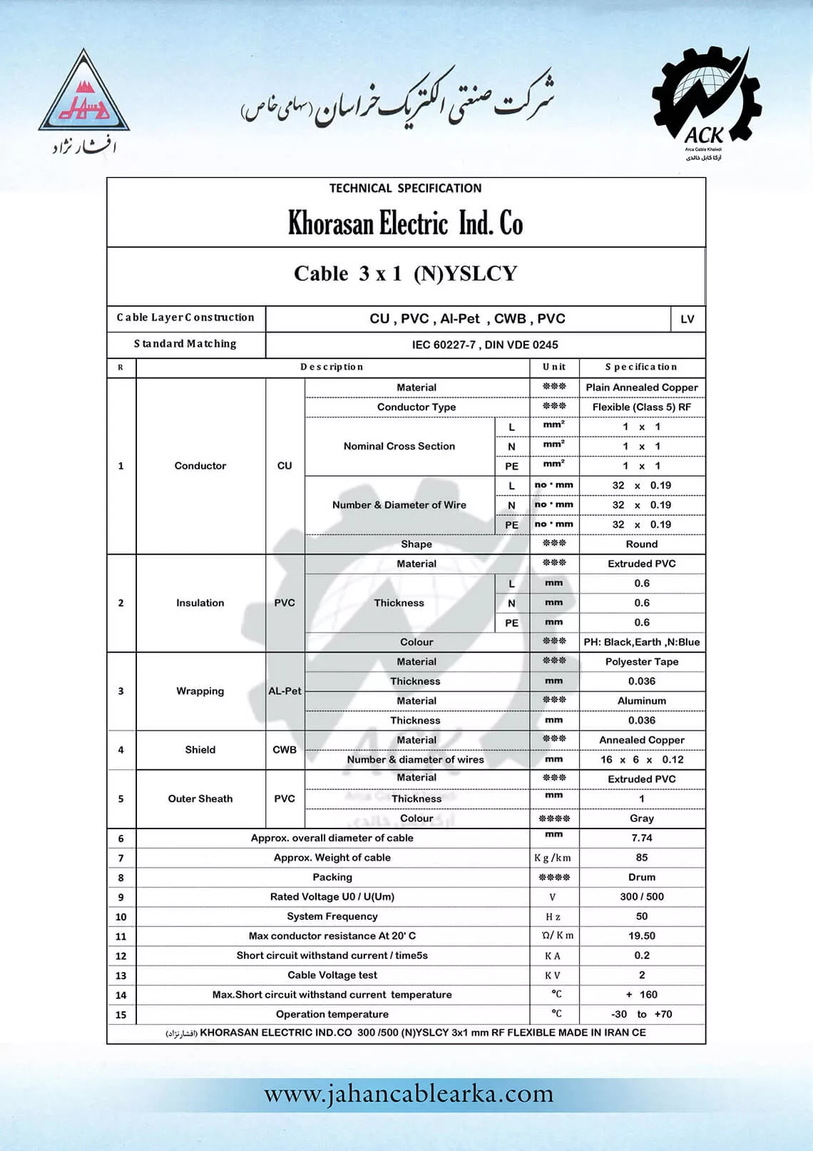 | سایز کابل : | 3 x 1 (N)YSLCY |
