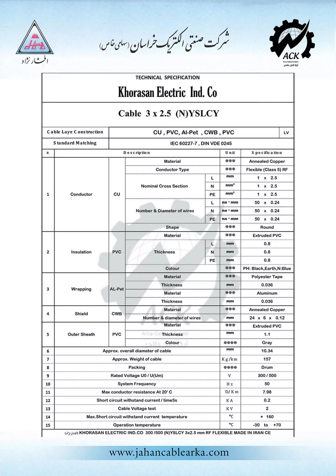 | سایز کابل : | 3 x 2.5 (N)YSLCY |