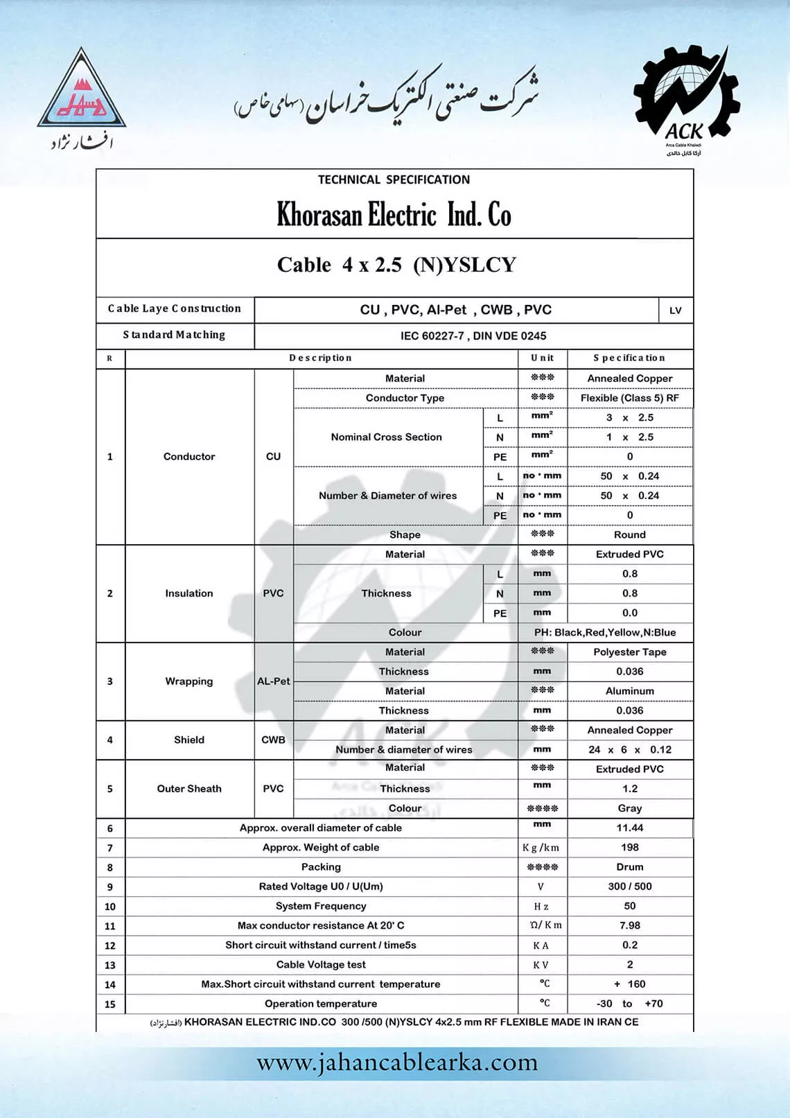 | سایز کابل : | 4 x 2.5 (N)YSLCY |