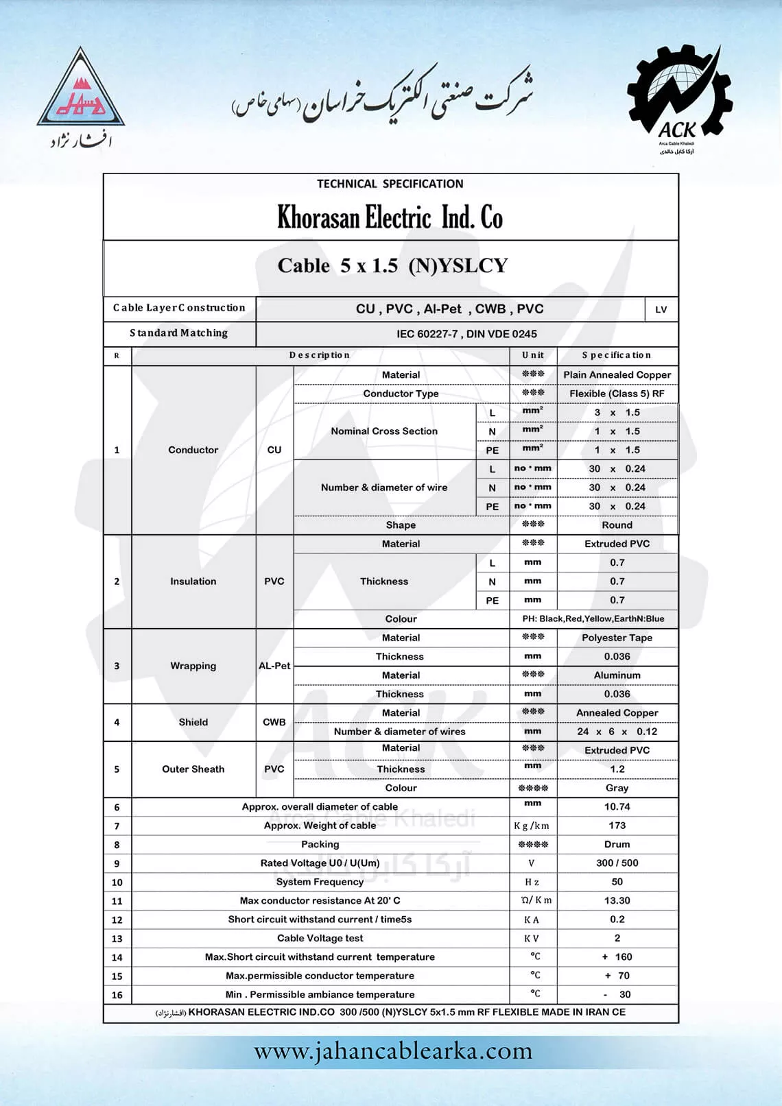 کابل شیلد دار 5x1.5 خراسان افشارنژاد