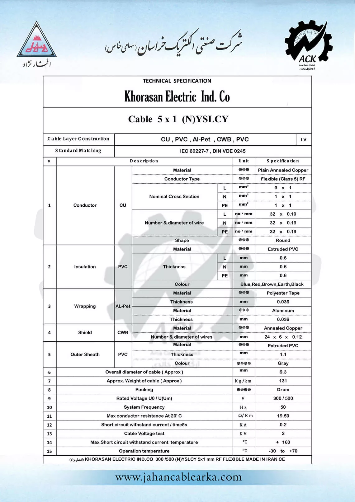 | سایز کابل : | 5 x 1 (N)YSLCY |